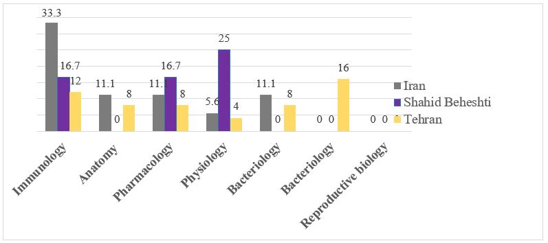 Figure 2. The frequency (%) of participants' responses to the qualitative section of the questionnaire, categorized by fields of basic medical sciences.
