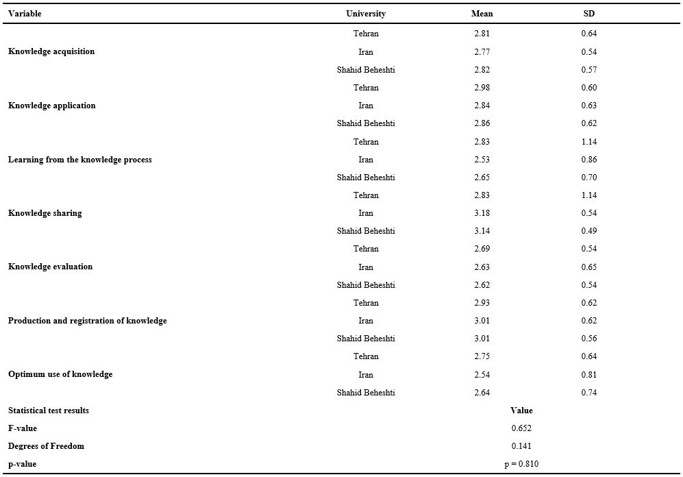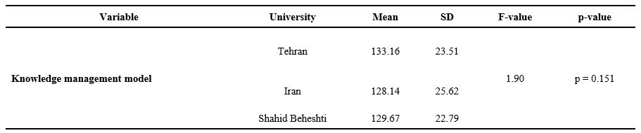 Note: One-way ANOVA test was used to compare the effect of the university factor on the level of knowledge management.