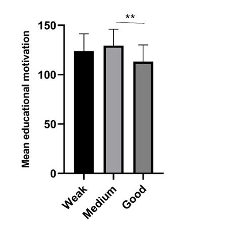 those with good economic status (p < 0.001). However, the differences between the good and moderate groups (p = 0.169) and the poor and moderate groups (p = 0.999) were not significant. Academic motivation showed a significant correlation with the academic level (term), as indicated by Spearman's correlation test (r = 0.464, p < 0.001). GPA had no significant correlation with the academic motivation score of students (r = 0.006, p = 0.935).