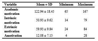 Note: Descriptive statistics were calculated for all academic motivation domains. Values represent the distribution of scores across study participants.