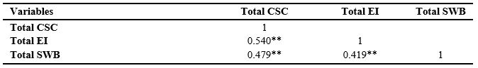 Table 3. Correlation matrix between CSC, EI, and SWB in nursing students